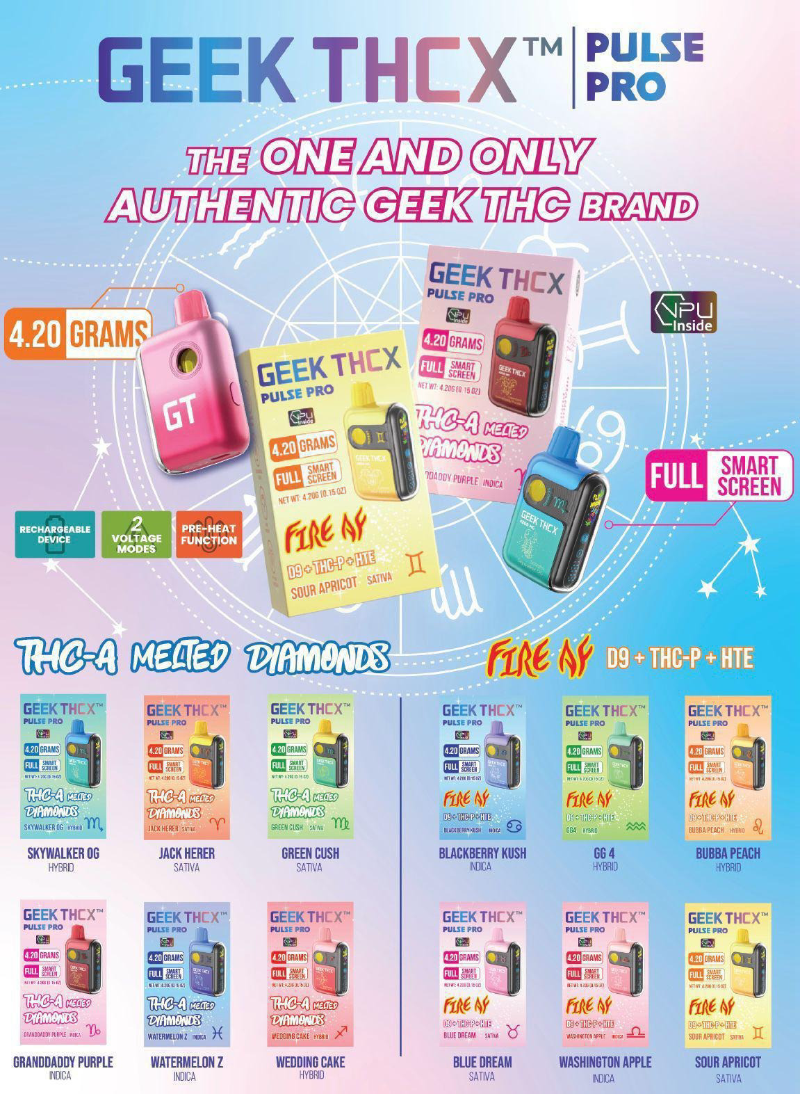 Each retail display includes five 4.2ML Geek THCX THCA Disposables, individually sealed for freshness and potency.