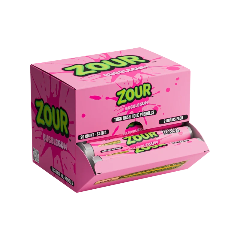 The Zour Stash Bubble Gum THCa Hash Hole Pre-Roll delivers old-school sweetness paired with a bright, energizing sativa high. Built with premium indoor-grown THCa flower, wrapped in a RAW cone, and powered by a slow-melting hash batter core, this Hash Hole burns evenly while staying loud on flavor.