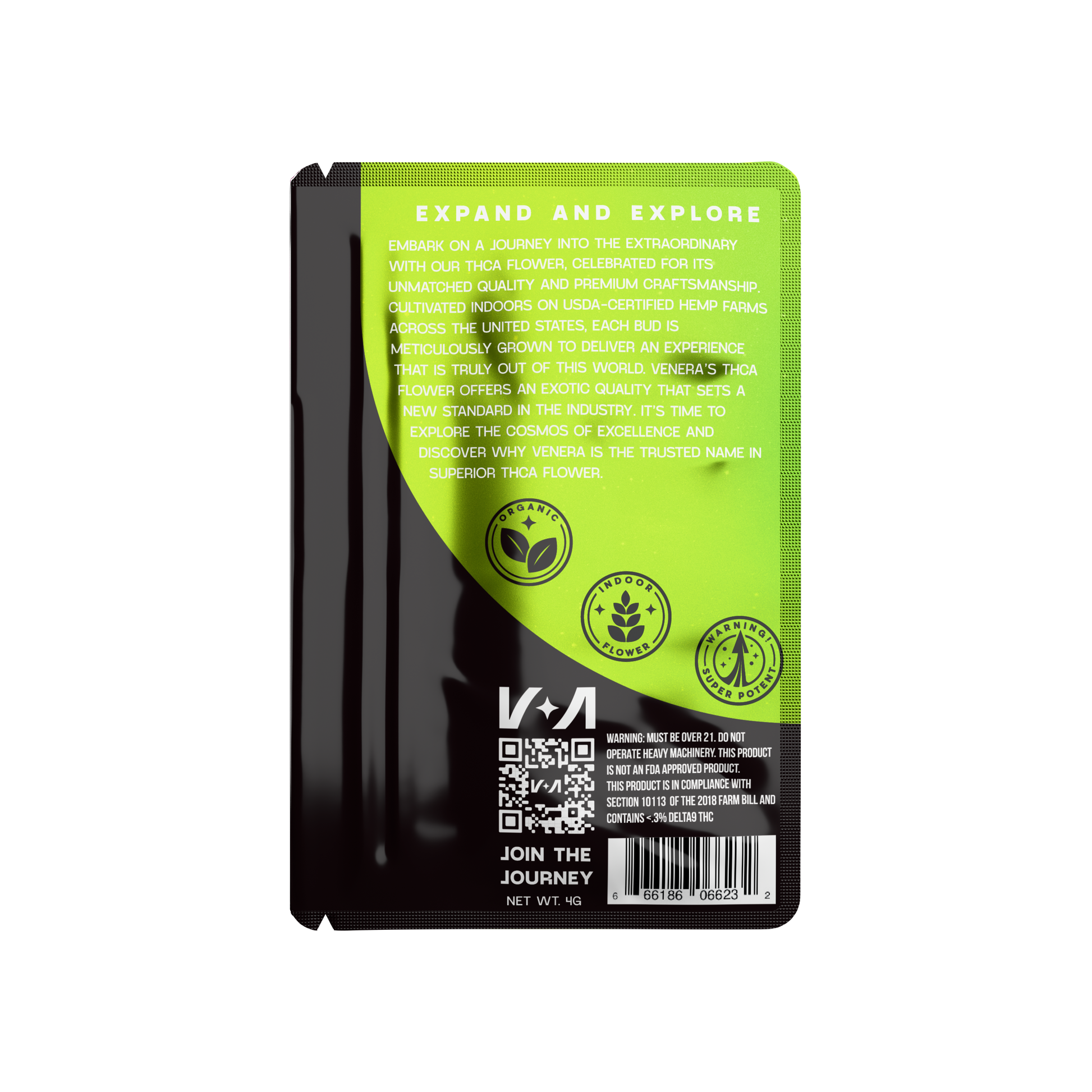 Each resealable pouch contains 4 grams of hand-trimmed, terpene-rich sativa flower, sealed to preserve freshness, aroma, and potency.