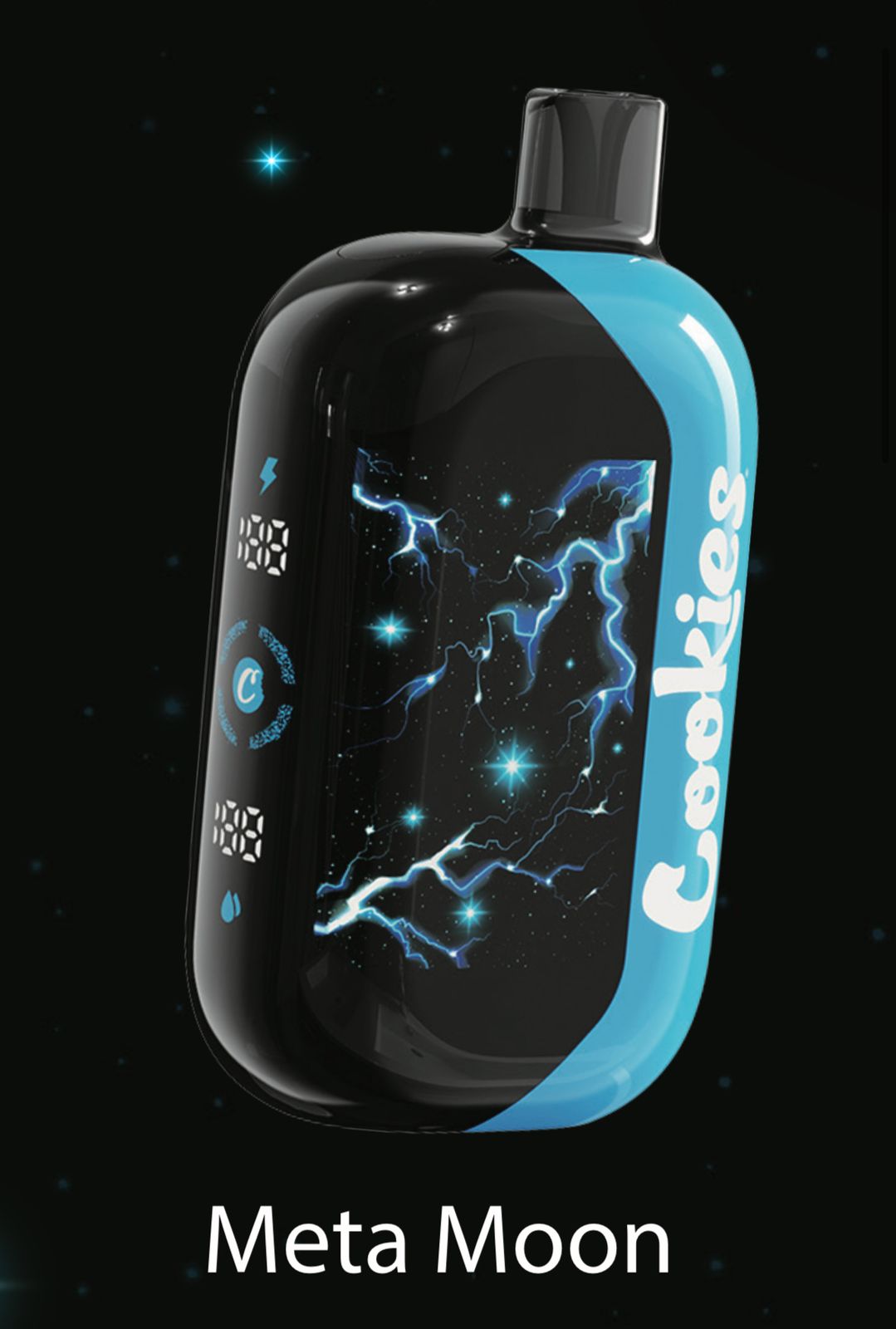Each device features Meta Moon flavor, Cookies’ signature branding, LED puff indicator, and USB-C charging port for premium convenience.