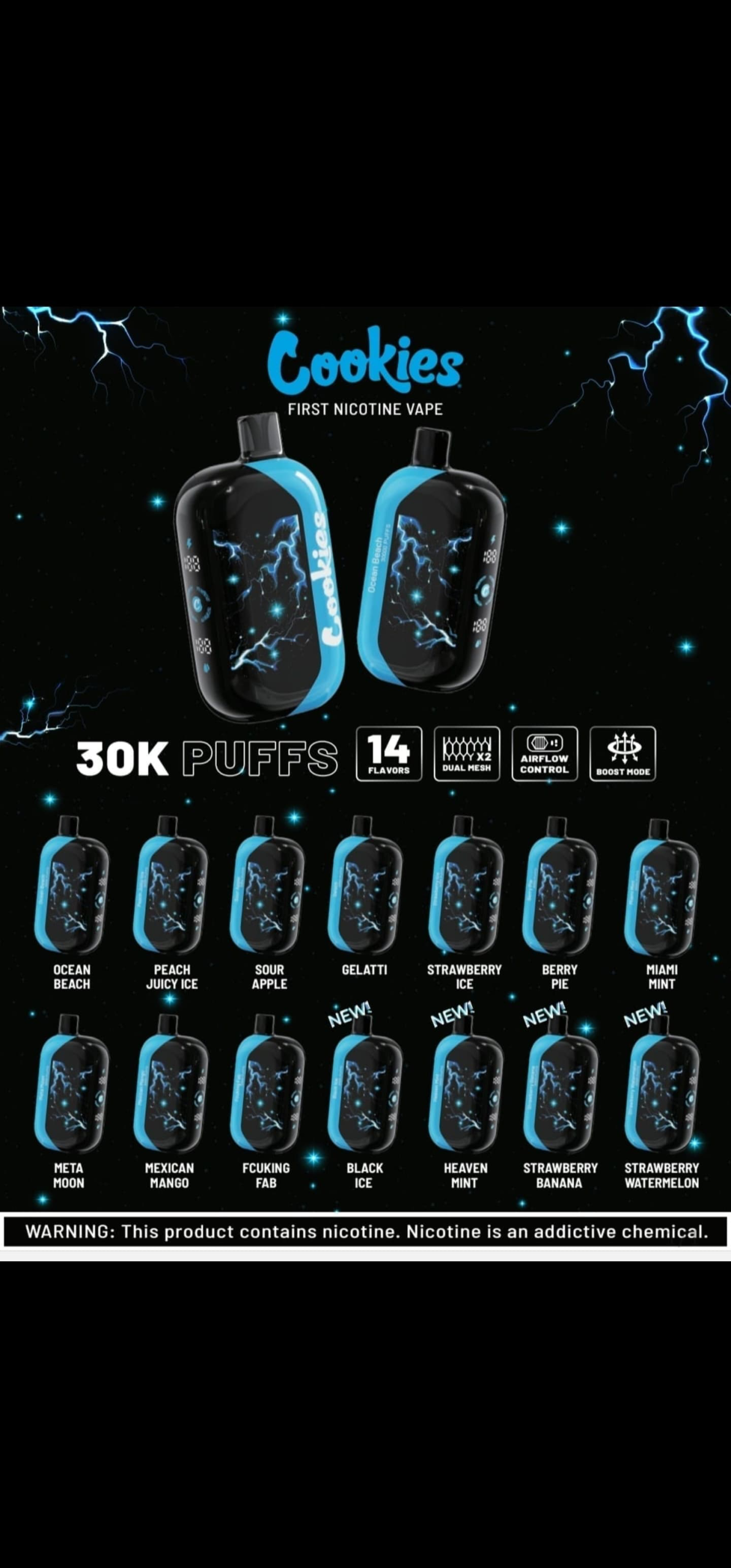 Each retail display includes five (5) 30K Puff Cookies Nicotine Vape Disposables, individually sealed for maximum freshness and leak prevention.