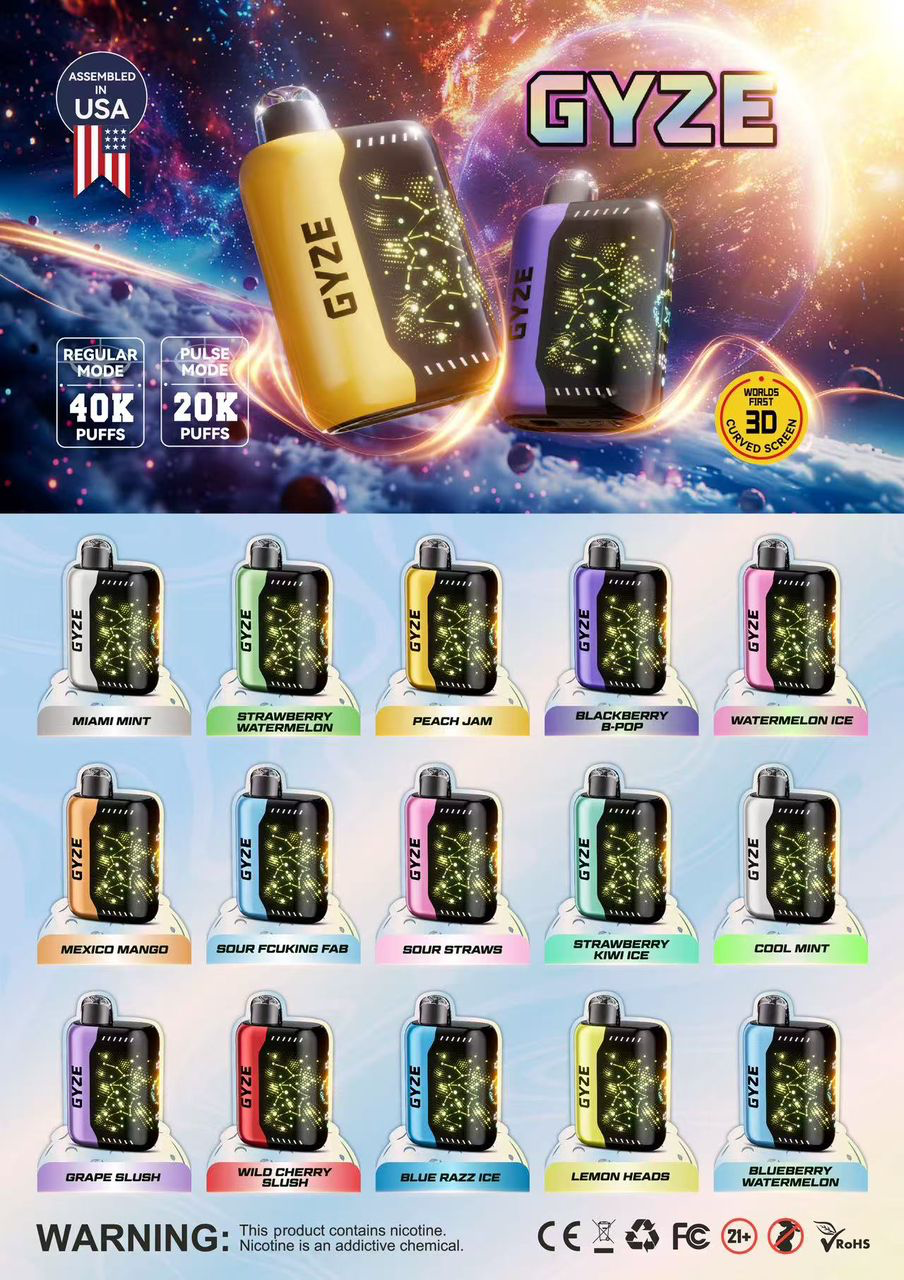Each retail display includes five (5) 40K Puff Gyze Bar Nicotine Vape Disposables, individually sealed for freshness, safety, and quality.